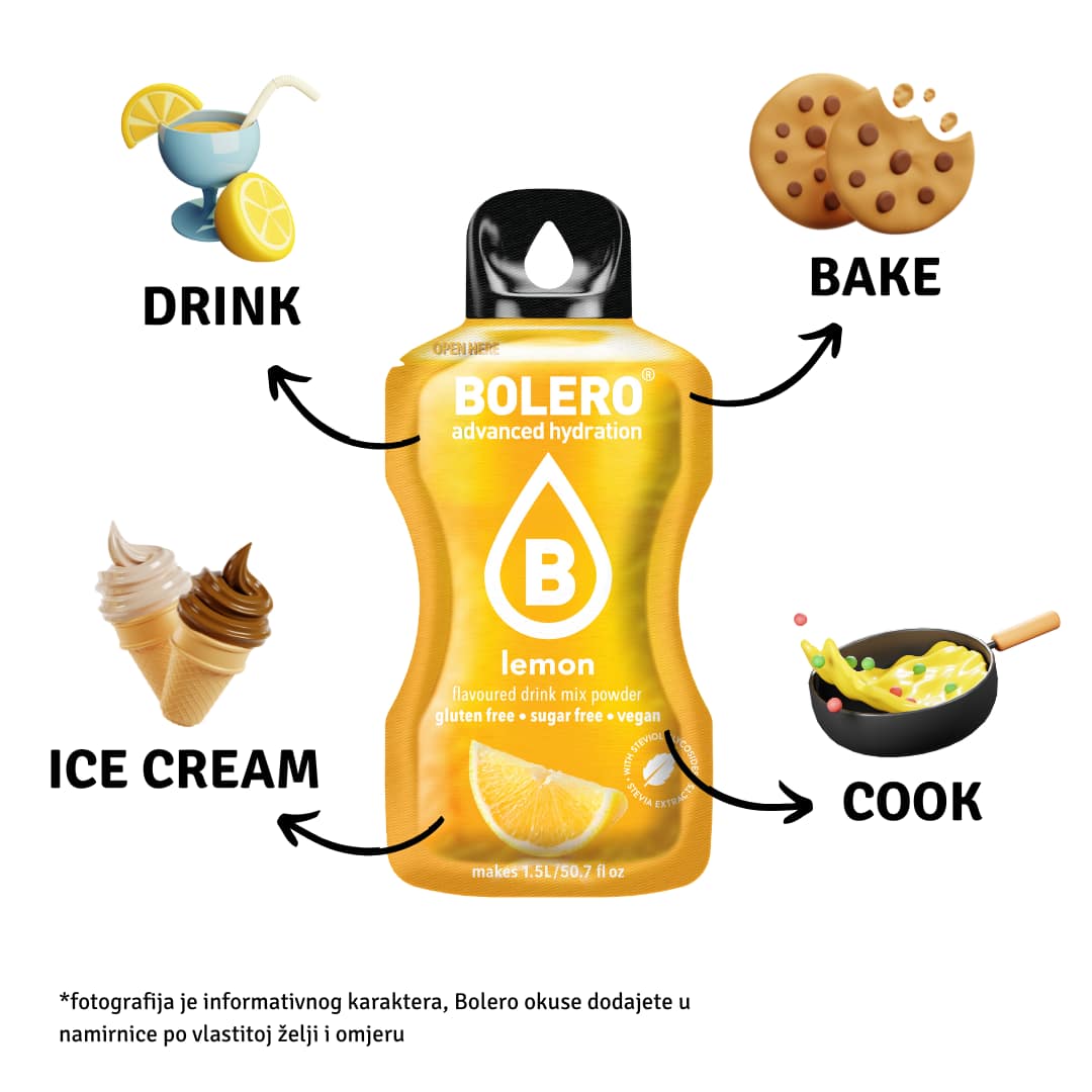 Bolero napitci su ukusni, praktični i niskokalorični, a svojom raznovrsnošću omogućuju vam da svakodnevnu hidrataciju i pripremu slastica učinite jednostavnom i zdravom. Idealni su za sve koji žele uživati u životu, a pritom čuvati zdravlje.
