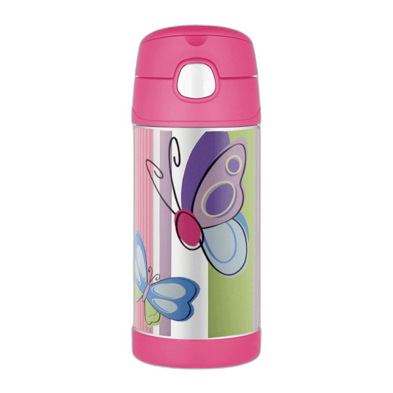 Vakuumski izolirana termosica od nehrđajućeg čelika za djecu sa slamkom zapremine od 355 ml – sa slikom leptira. Mogućnost dodavanja graviranja na tijelo termosice
